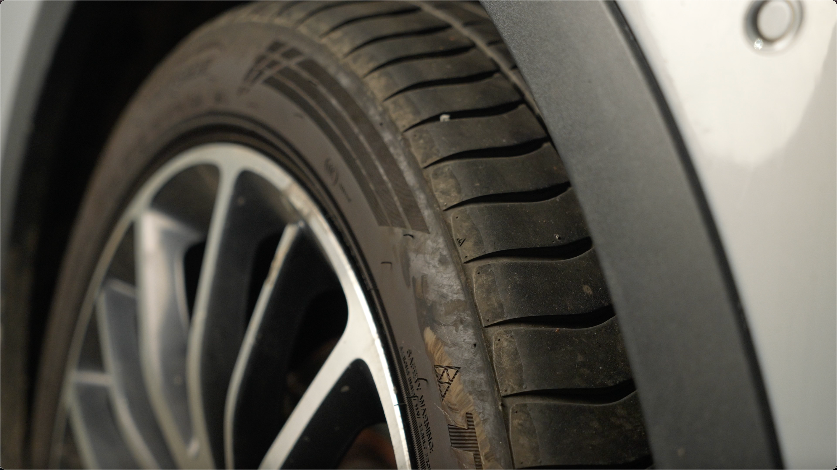 虽说江浙沪一带路面确实保养的也比较好,但之前咱在解读耐久测试时,也跟大家讲过,耐久路面是有一个换算系数的,那么反过来讲,你任何一次出行,都会或多或少嗯地经过不同高程差、不同冲击的路面,按合理的置信区间和冲击概率来折算,38万公里对一辆车来说,绝对是一个巨大的考验,不说别的,在这么多公里行驶期间在不同时期换过很多次轮胎,有的是单轮更换的,有的是仅仅对掉两侧轮胎,也缺少更严谨的四轮定位,目前来看这车一侧轮胎是有一定偏磨的。