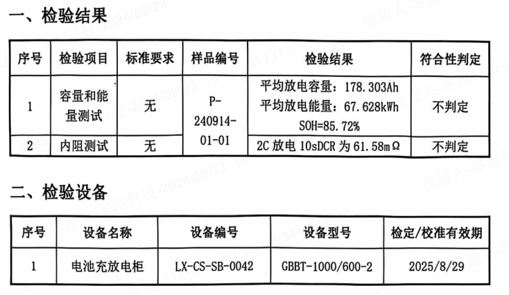 结果来看,三次测试放电能量平均为67.628千瓦时,电池包出厂总量是78.54千瓦时,就是平常我们所说的度数,度数其实就是铭牌上电池额定电压和额定容量他俩相乘后得来的。 如果再不理解,你还可以从单位量纲来理解,伏特乘以安培再乘以小时,不就是千瓦时,也就是度数。我们这次其实也测试了放电能量,三次平均是67.628度。 当然我们这次主要考察的是SOH,也就是容量衰减剩余量或者叫做健康度,这也是行业内比较常用的做法,算的是总容量的衰减率,也就是Ah的衰减率,总容量三次平均是178.303Ah,除以额定容量208Ah得出SOH 等于85.72%。 一般来讲 对私质保就是8年12-16万里程,保证SOH 75%就过关了,零跑C11,2年用得这么狠,SOH还能弄 到85.72。这个成绩还是挺能打的。另外还有一个2C放电10sDCR内阻是61.58毫欧,这里面信息量更大,不过本期时长有限,我今后会精讲这个参数。